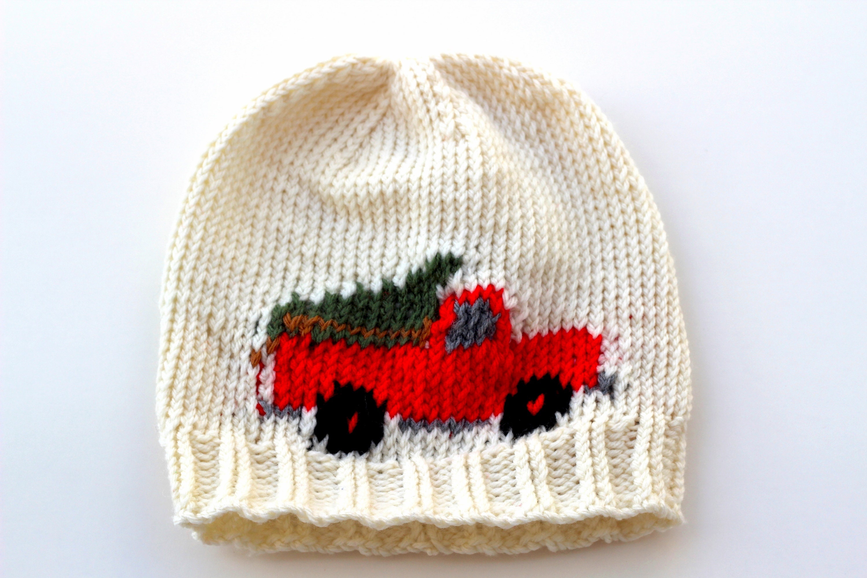 Knitted Christmas Red Truck Hat Christmas Tree Winter Beanie Etsy