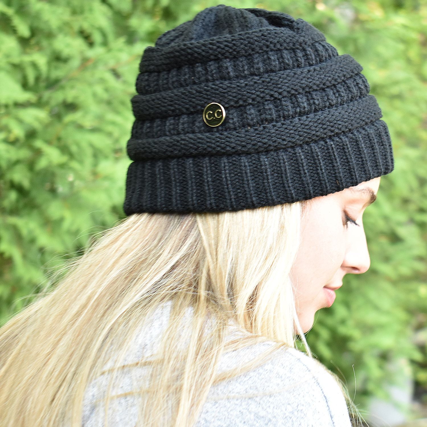 C C Soft Stretch Cable Knit Side Epoxy Button For Mask Beanie Skully Beige Walmart Com