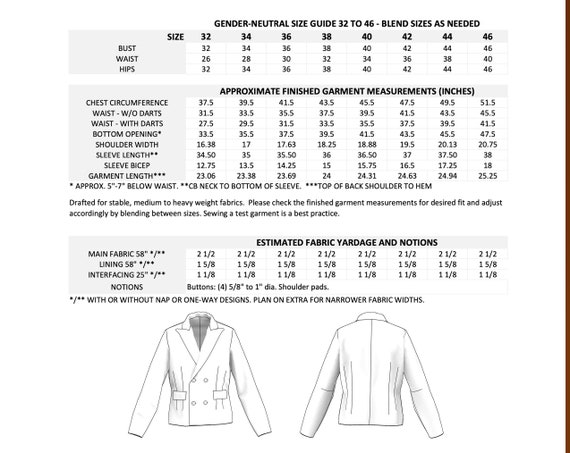 Gender Neutral Blazer Digital Sewing Pattern Pdf Size 32 46 Etsy Australia